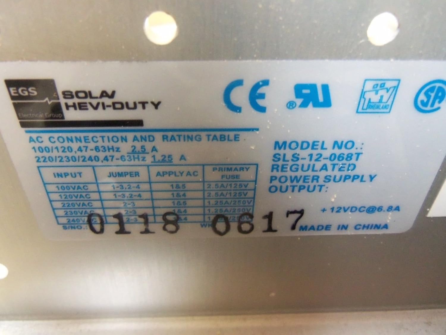 Solahd Power Supply, Linear, 12V, 81.6W - SLS-12-068T
