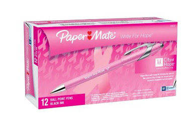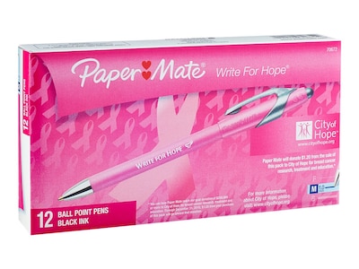 Paper Mate Write for Hope Edition FlexGrip Elite Ballpoint Pen, Retractable, Medium 1 mm, Black Ink, Pink Barrel, Dozen (70672)