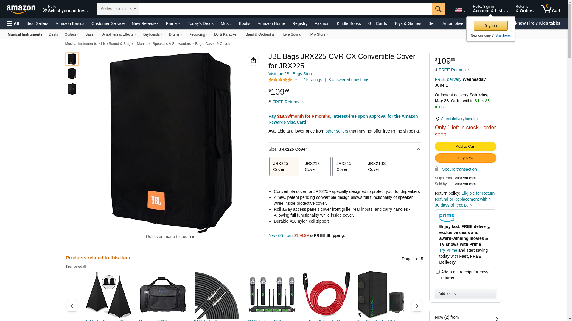 | JRX225-CVR-CX | 1 | 1 | 1 @ $109.99 | ||