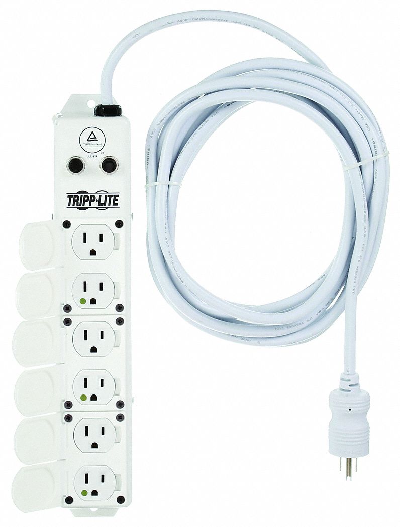 - VERSATILE MEDICAL GRADE SOLUTION WITH SIX HOSPITAL-GRADE OUTLETS & 15 FT CORD: 6 NEMA 5-15r-hg hospital-grade outlets provide consistent power. 15 ft. Power cord provides ample reach to the power source. Supplies power to movable plug-connected components in operating rooms and patient-care vicinities