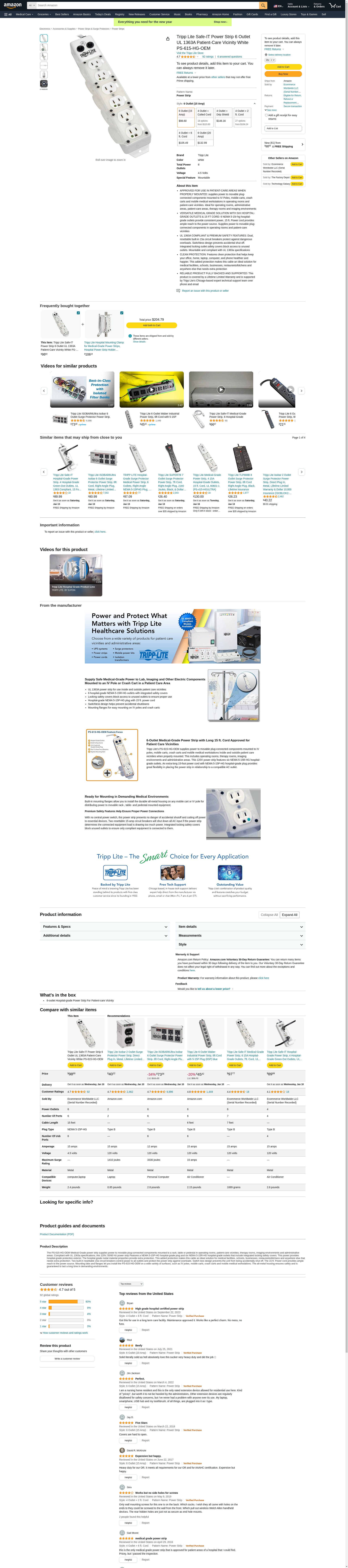Tripp LitePS-615-HG-OEM Price: $102.01 Power Strip Medical 120V 6 Outlet UL1363A 15ft Cord Metal