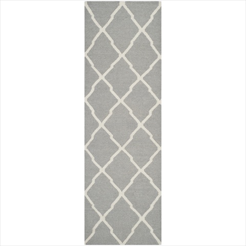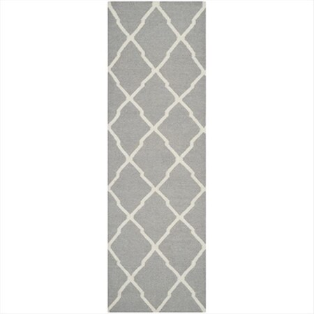 SAFAVIEH Dhurries Collection 2'6" x 6' Grey/Ivory DHU634B Handmade Flatweave Premium Wool Runner Rug