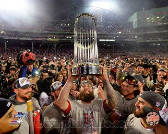 Mike Napoli holds the World Series Trophy Game 6 of the 2013 World Series Sports Photo (10 x 8)