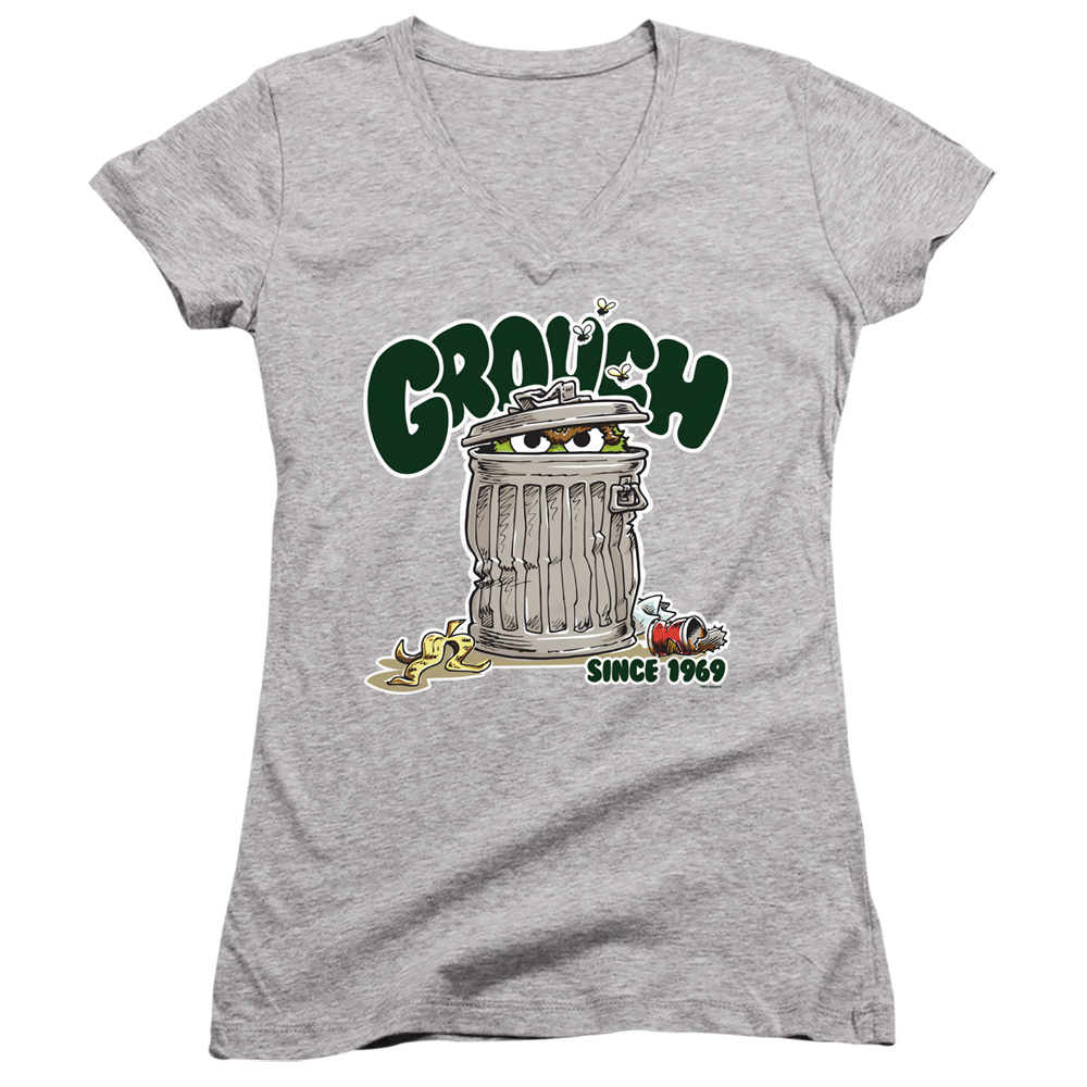 Trevco SST289-JV-2 Sesame Street & Grouch-Junior V-Neck T-Shirt, Athletic Heather - Medium