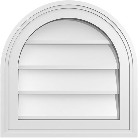 Round Top Surface Mount PVC Gable Vent w/ 2"W x 1-1/2"P Brickmould Frame, 16"W x 16"H