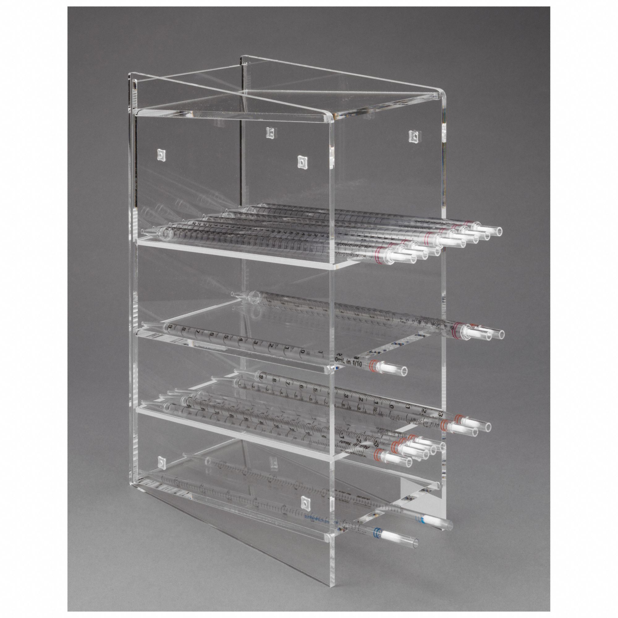 Item Serological Pipette Holder, Mounting Type Countertop, Number of Compartments 4, Material Acrylic, Clear, Height 16 in, Length 11 in, Width 6 in, For Use With Pipettes, Lab Rack Capacity Holds 4 Types of Serological Pipettes