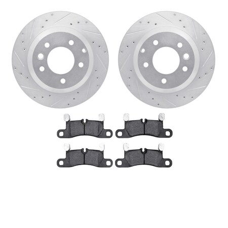 Dynamic Friction Company Rear Brake Rotors Drilled and Slotted Silver with 5000 Advanced Brake Pads - 7502-74089