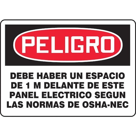 Accuform SHMELC001VS Sign, Legend "PELIGRO Debe Haber UN ESPACIO DE 1 M DELANTE DE ESTE Panel", 7" Length x 10" Width x 0.004" Thickness, Adhesive Vinyl, 7" x 10", Red/Black on White