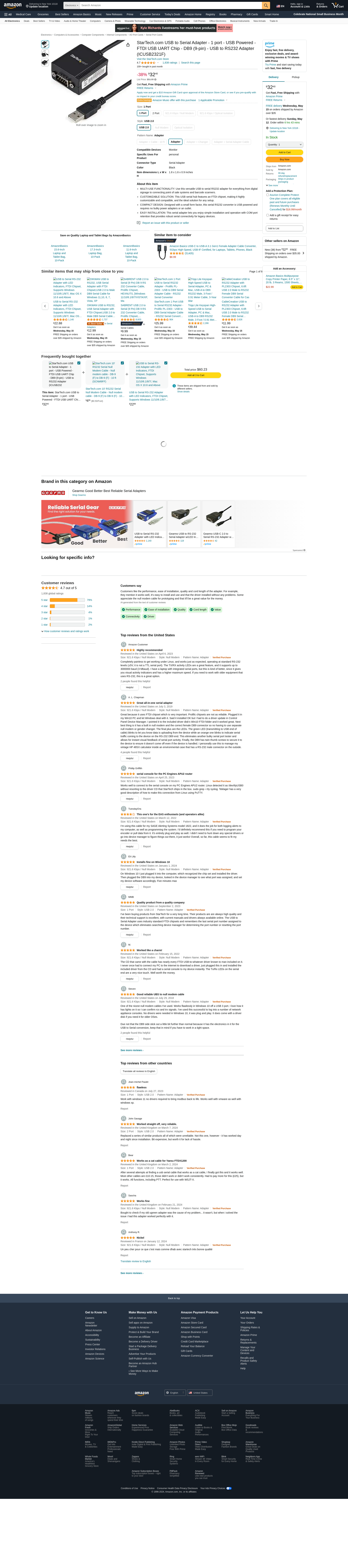 StarTech.com FTDI USB to Serial Adapter Cable W/COM