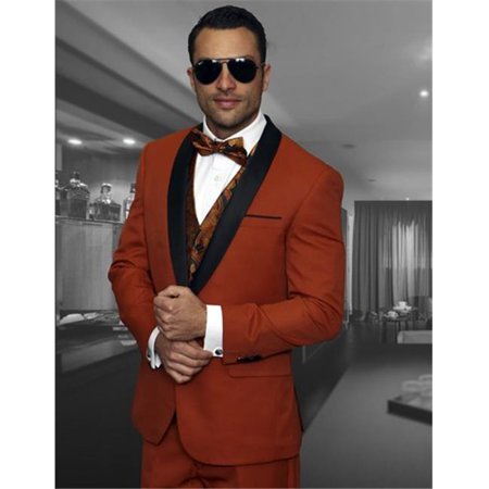 <p>Statement Suits are for the people who would like to have more statement, art and fun in their fashion. Our international team of designers combine their new ideas, patterns and graphics to meet your expectation. The patterns for our clothes are studied and modified every season to follow the constantly changing trends and to make sure they fit perfectly. Our suits are targeted towards individuals who like to dress to impress. </p> <b>Features</b> <ul> <li>Capri 3 Piece Modern Fit Suit, Tuxedo</li> <li>Flat Front Pants, Open Inseam</li> <li>Fully Lined Jacket</li> <li>Pants Lined to the Knee</li> <li>SB1, Notch Lapel, 2 Side Vents</li> </ul> <b>Specifications</b> <ul> <li><b>Color:</b> Brick</li> <li><b>Size:</b> 36S</li> </ul>- SKU: STNG844