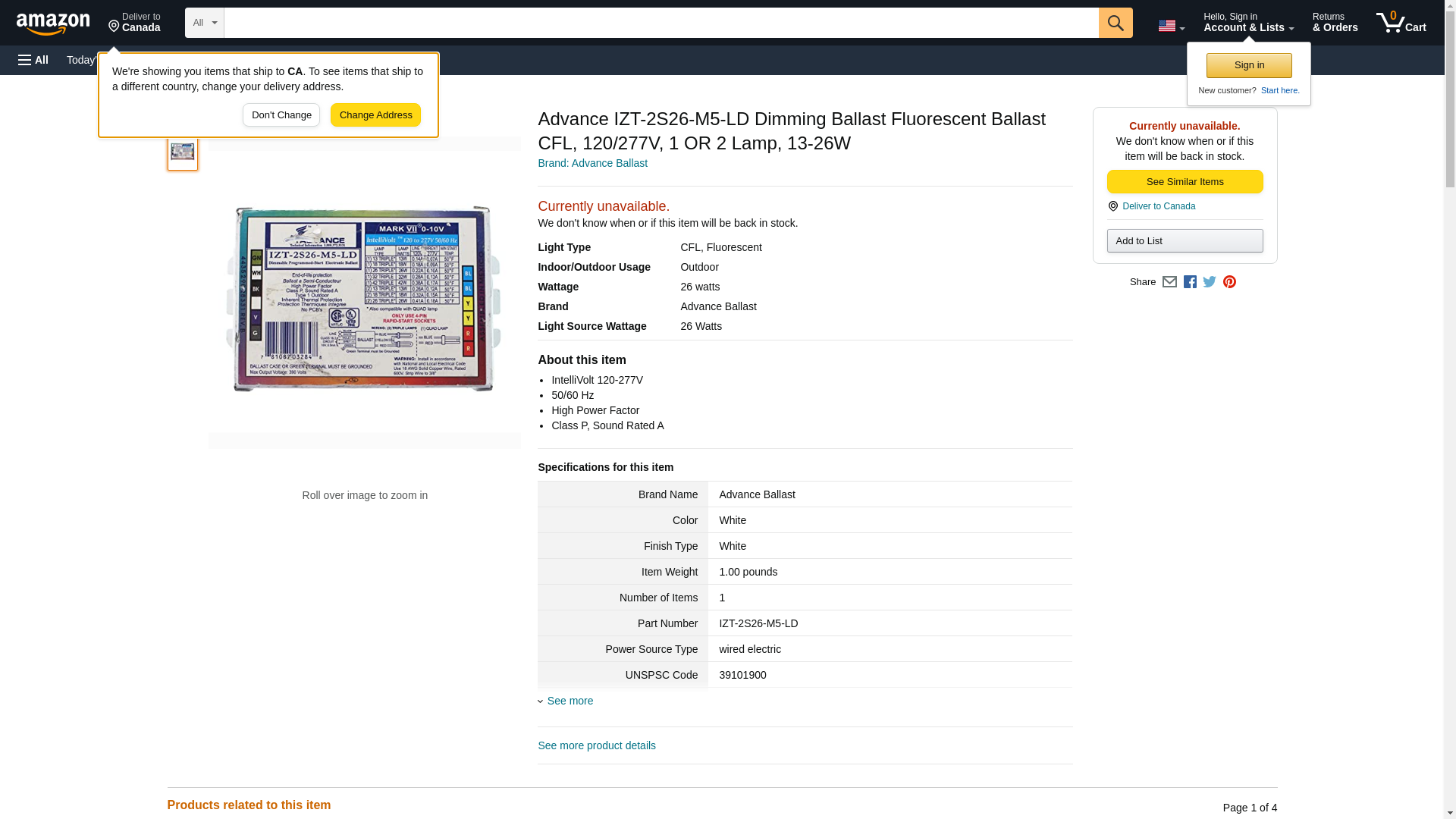 | Manufacturer | Advance Ballast |