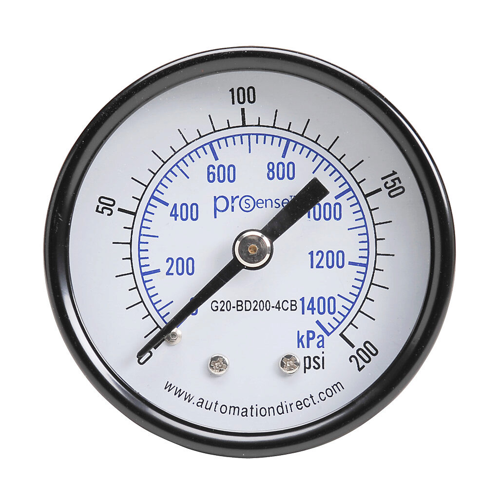 As an Amazon Associate, we earn from qualifying purchases. ProSense . G20-BD200-4CB ProSense . G20-BD200-4CB Gallery Attributes Brand name, Manufacturer name, ManufacturerProSense CategoryL1Process Control & Measurement CategoryL2Pressure Gauges & Thermometers CategoryL3Dial Pressure Gauges Weight0.2 WeightUnitlbs moq, multiple, tierMinQty11 MPN, SKUG20-BD200-4CB qtyInStock189 tierPrice110.50 Distributor offers SellerSKUMOQIn stockMultiplePrices Automation DirectG20-BD200-4CB118911 @ $10.50