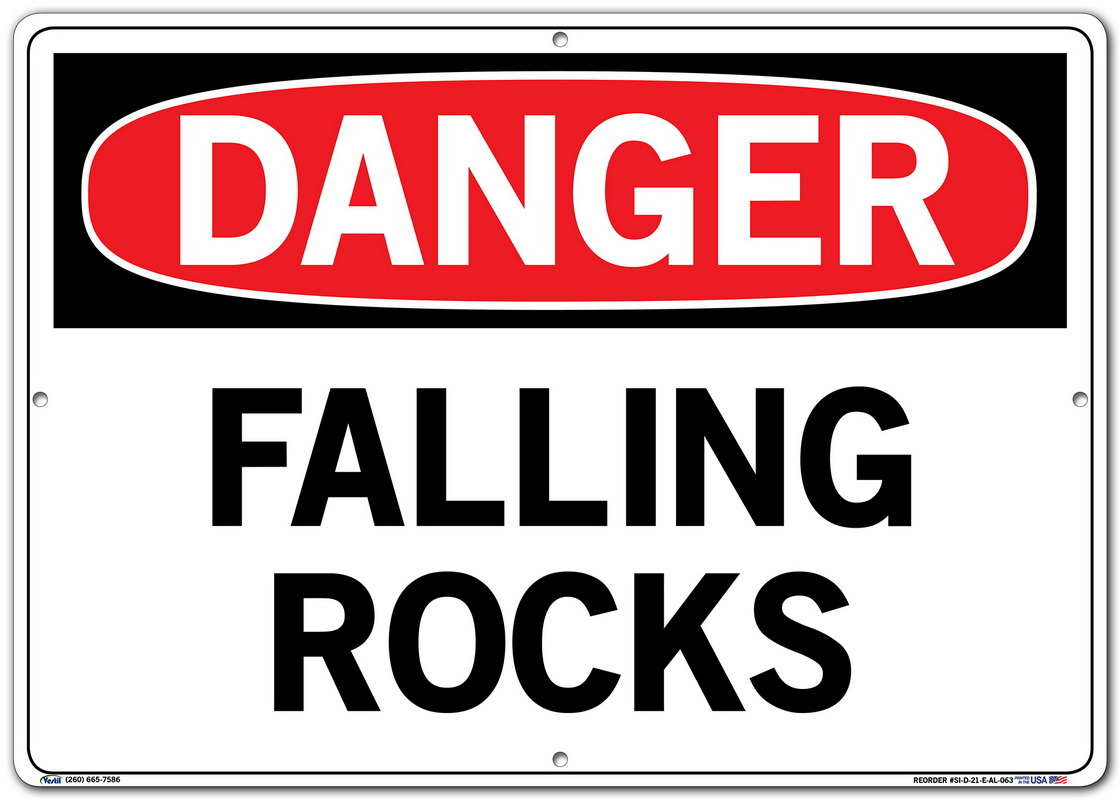 Vestil SI-D-21-E-AL-063 FALLING ROCKS Danger Sign, Aluminum, 0.063" Overall Size, 20.5" W x 14.5" H