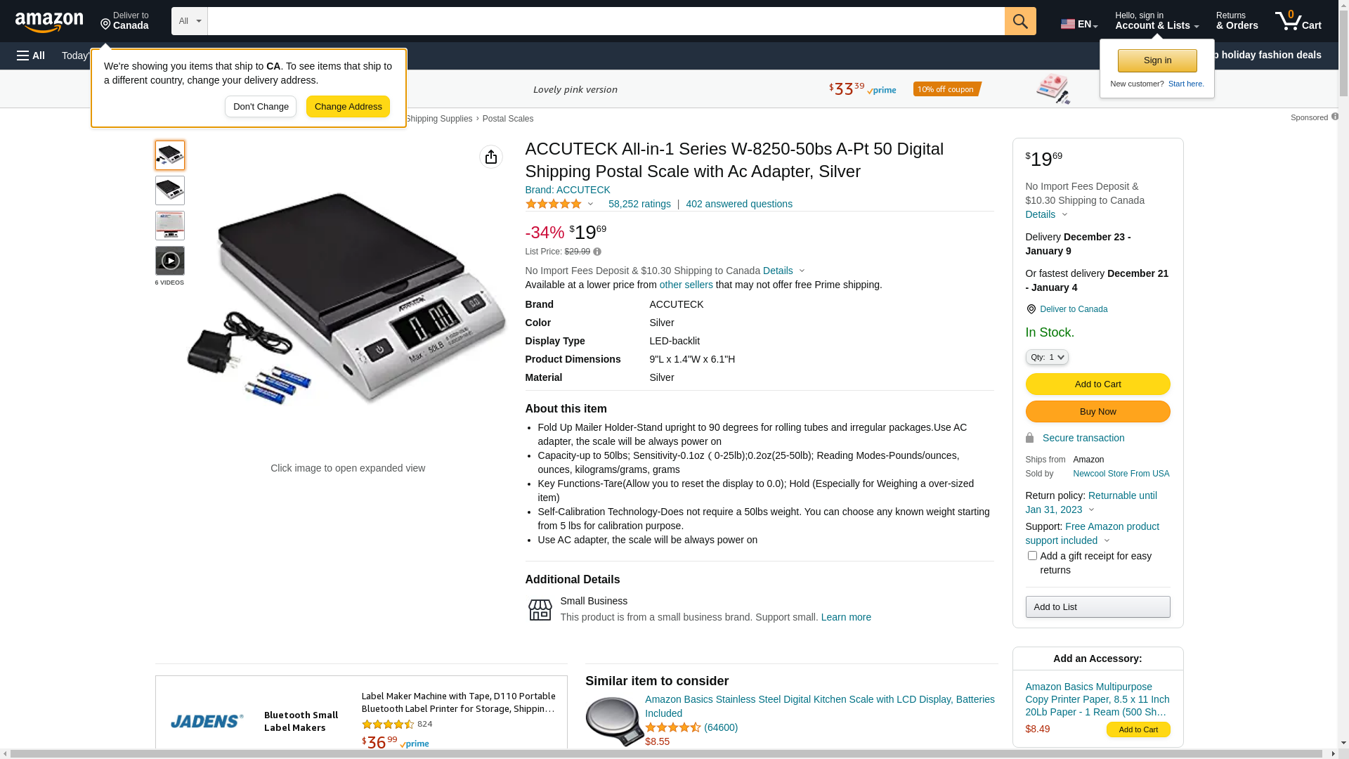 ACCUTECK All-in-1 Series W-8250-50bs A-Pt 50 Digital Shipping Postal Scale with Ac Adapter, Silver .New 2021