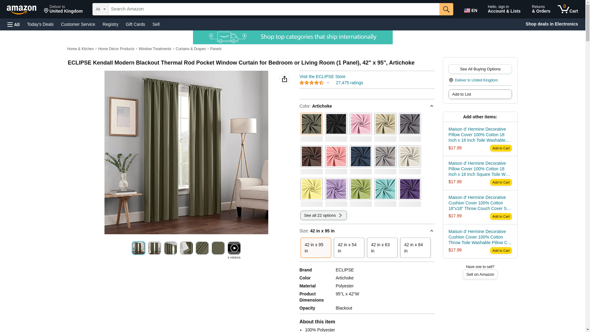 Experience the darkness, silence and beauty of Eclipse curtains. Eclipse blackout panels have been laboratory-tested to block out over 99% of intrusive light, unwanted noise and can help you save on home heating and cooling costs. Eclipse curtains offer a unique blend of fashion and function for any home decor. Transform your media room into the ultimate home theater experience, or create ambiance in your dining area. National Sleep Foundation studies show that reduced light and noise are optimal for a better night?s sleep. Eclipse Curtains are perfect for the bedroom, kid?s room or nursery, providing the ideal sleep environment for the whole family. The magic is in the Thermaback construction. The innovative foam-backing is applied to the fabric and allows you to enjoy all of the light-blocking, noise reducing and energy saving benefits, while providing the same fashionable style and elegance of naturally flowing curtains. Hang two or more curtain panels on a standard or decorative rod for optimal coverage and desired effect. Sold as a single rod-pocket panel measuring 42 in. wide in your choice of 63 in., 84 in. or 95 in. lengths. Woven drapery offers a subtle texture is available in cafe beige, black, chocolate brown, ruby red, ivory, stone blue, and artichoke green. Curtain rod sold separately. 100% Polyester. Machine wash gentle cycle, tumble dry, do not bleach. Imported.