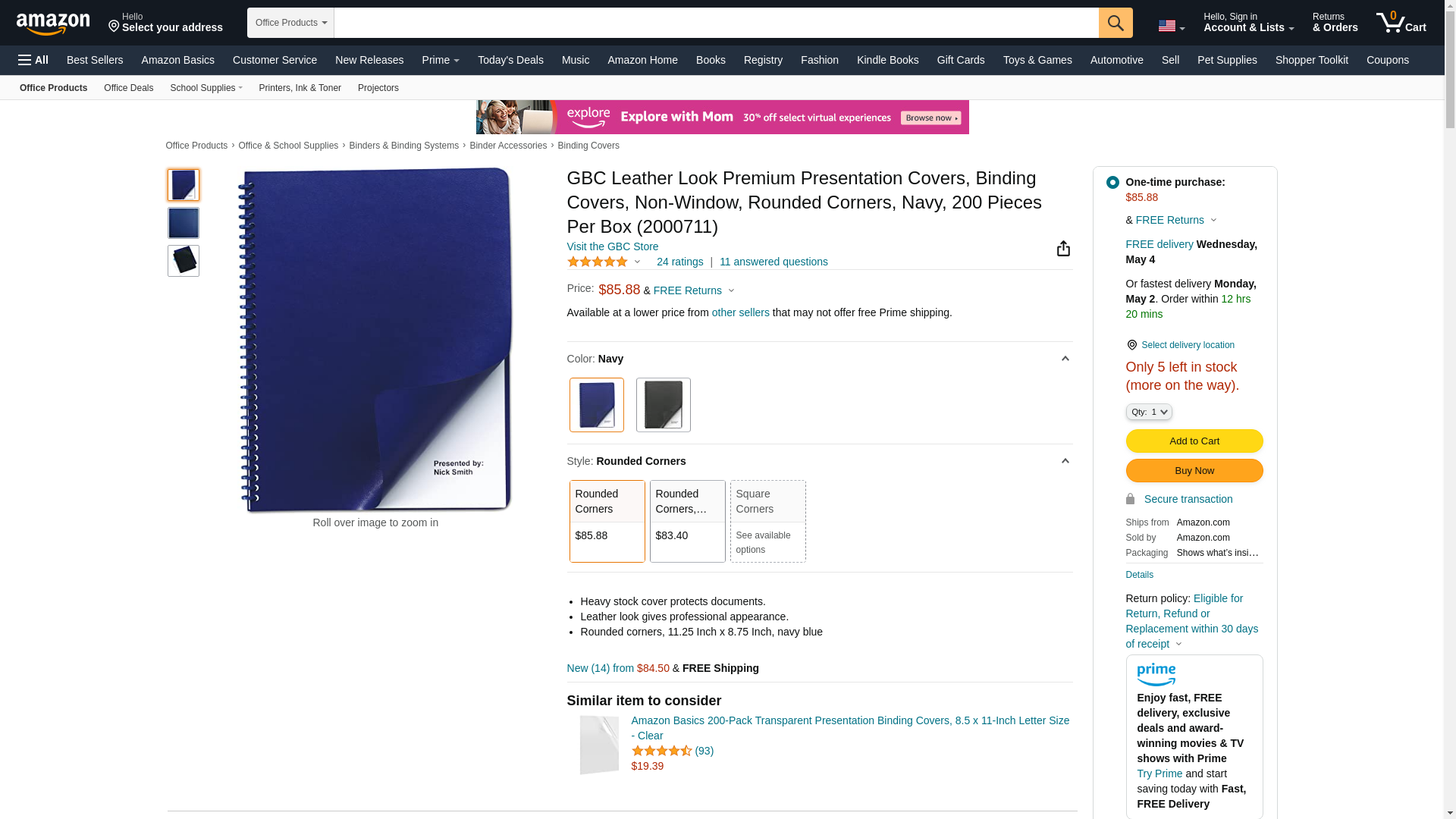 GBC Leather Look Premium Presentation Covers, Binding Covers, Non-Window, Rounded Corners, Navy, 200 Pieces Per Box (...