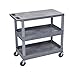 - Ergonomic push handle molded into top shelf. Rolling cart with four 4" full swivel casters, two with locking brake.