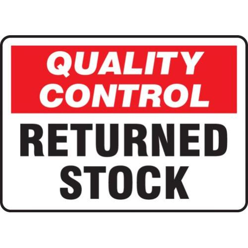 Accuform MQTL714VP Plastic Sign, Quality Control Returned Stock", 7" Length x 10" Width x 0.055" Thickness, Red/Black On White