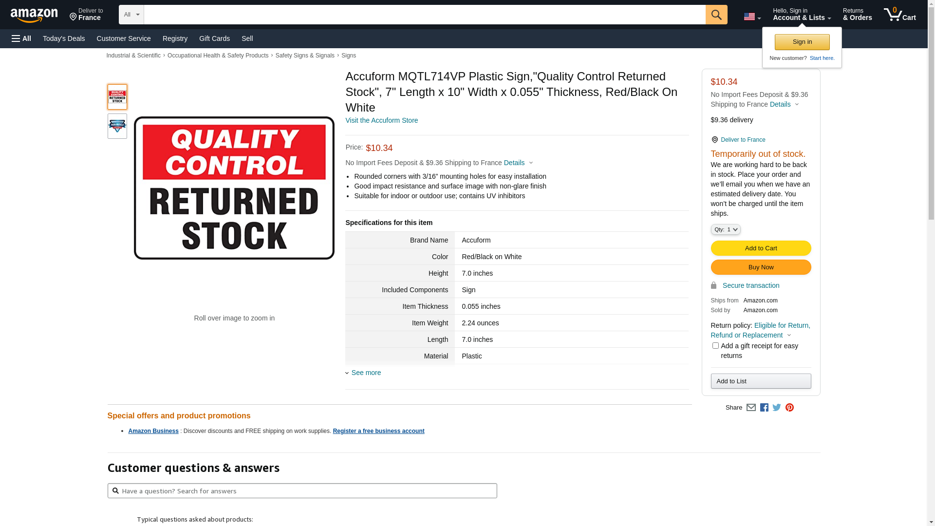 | Manufacturer | Accuform |