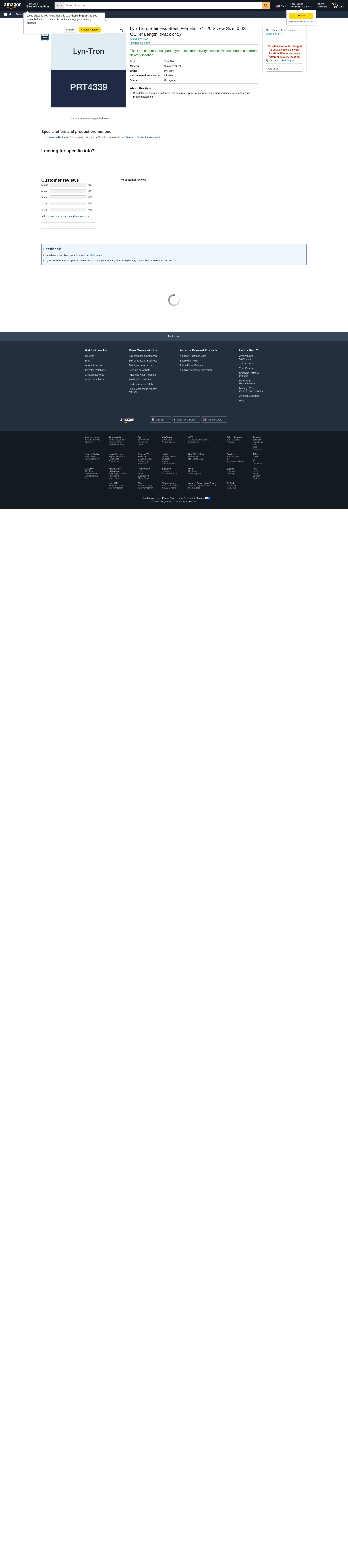 Lyn-Tron, Stainless Steel, Female, 1/4"-20 Screw Size, 0.625" OD, 4" Length, (Pack of 5)