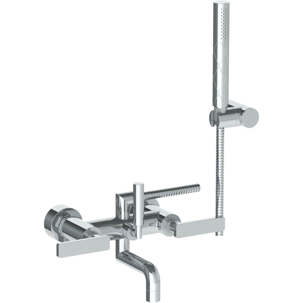 WATERMARK 71-5.2-LLD4-SN LILY TWO HOLES WALL MOUNT EXPOSED TUB FILLER WITH HAND SHOWER, SATIN NICKEL, DIAMOND HANDLE
