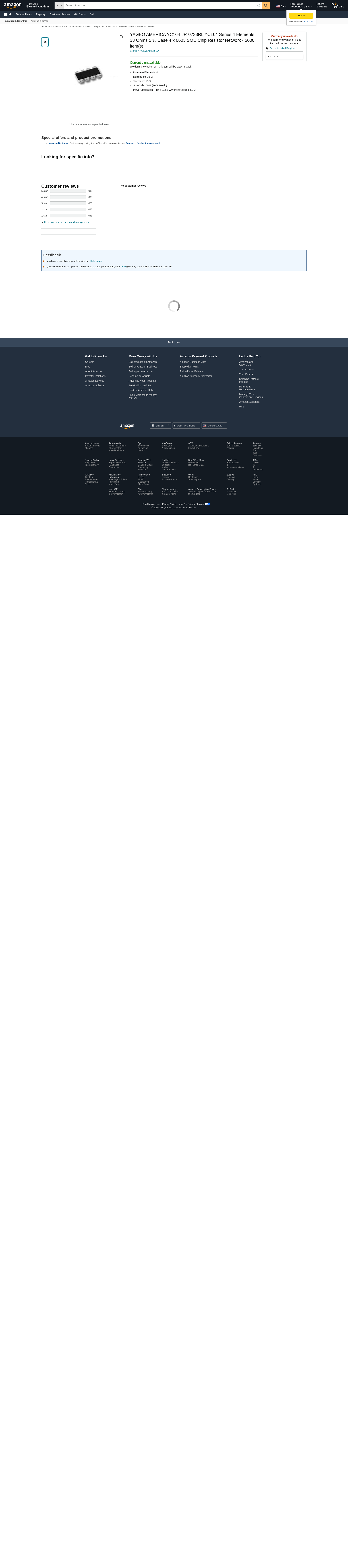 YAGEO AMERICA YC164-JR-0733RL YC164 Series 4 Elements 33 Ohms 5 % Case 4 x 0603 SMD Chip Resistor Network - 5000 item(s)
