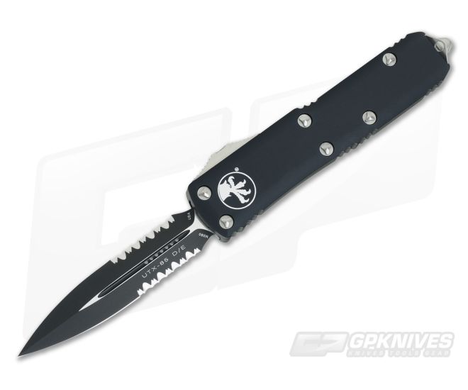 Microtech UTX-85 Black Serrated Double Edge OTF 232-2 Automatic Knife For Sale