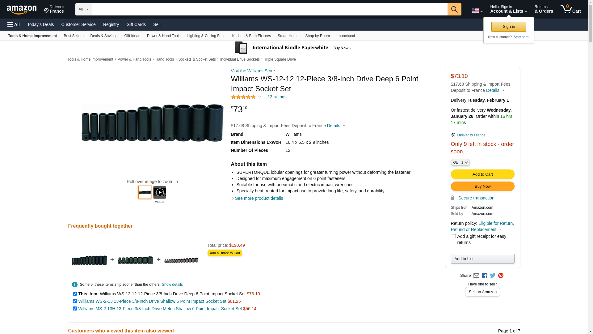 Williams JHWWS-12-12 Deep Impact Socket 3/8" Drive Set 12 Piece JHWWS-12-12
