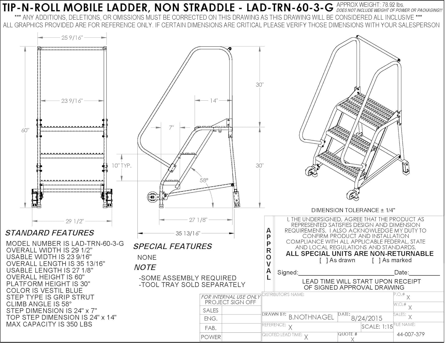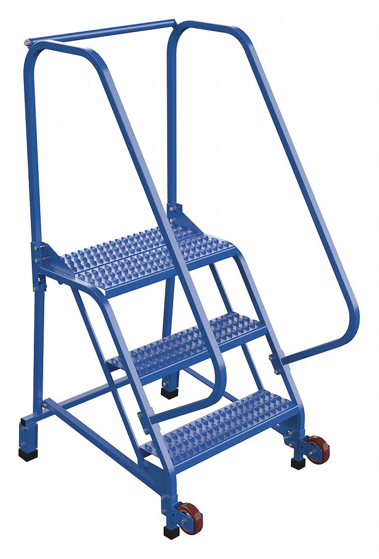Vestil LAD-TRN-60-3-G Tip-N-Roll Ladder, Grip Strut, 3 Step, 58 Degree, Blue