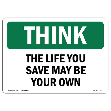OSHA THINK Sign, The Life You Save May Be Your Own, 10in X 7in Decal