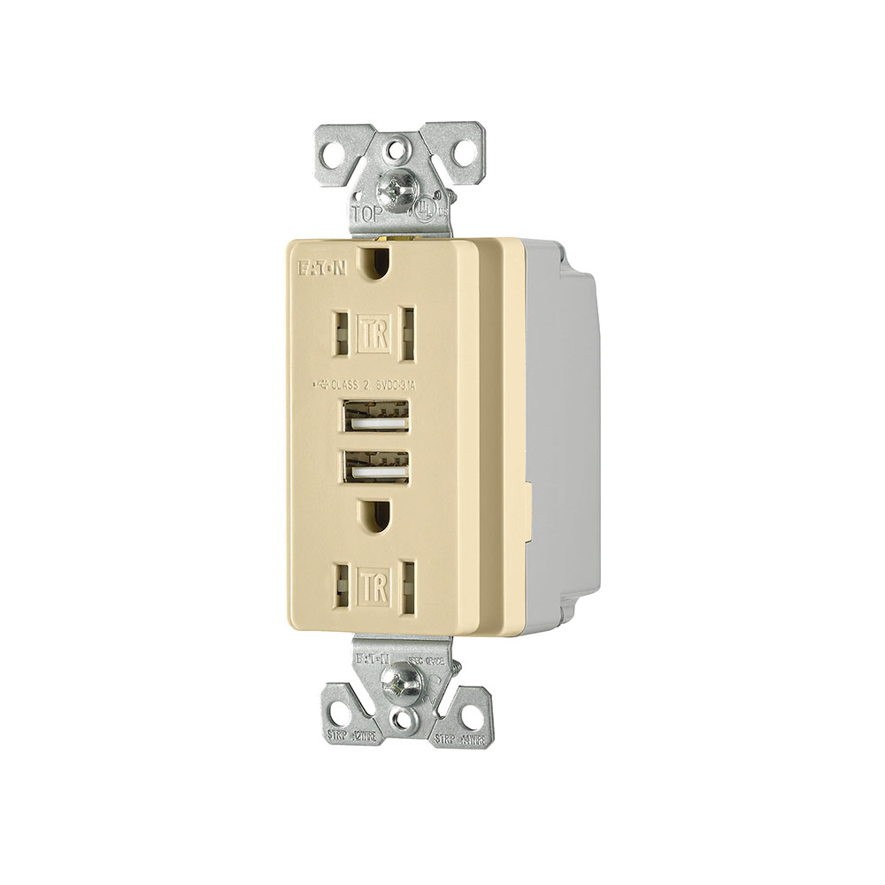 Cooper Wiring TR7745V-K Commercial Spec Grade USB Receptacle, 125 V, 15 A, 2 Outlet, 2 Port, Ivory