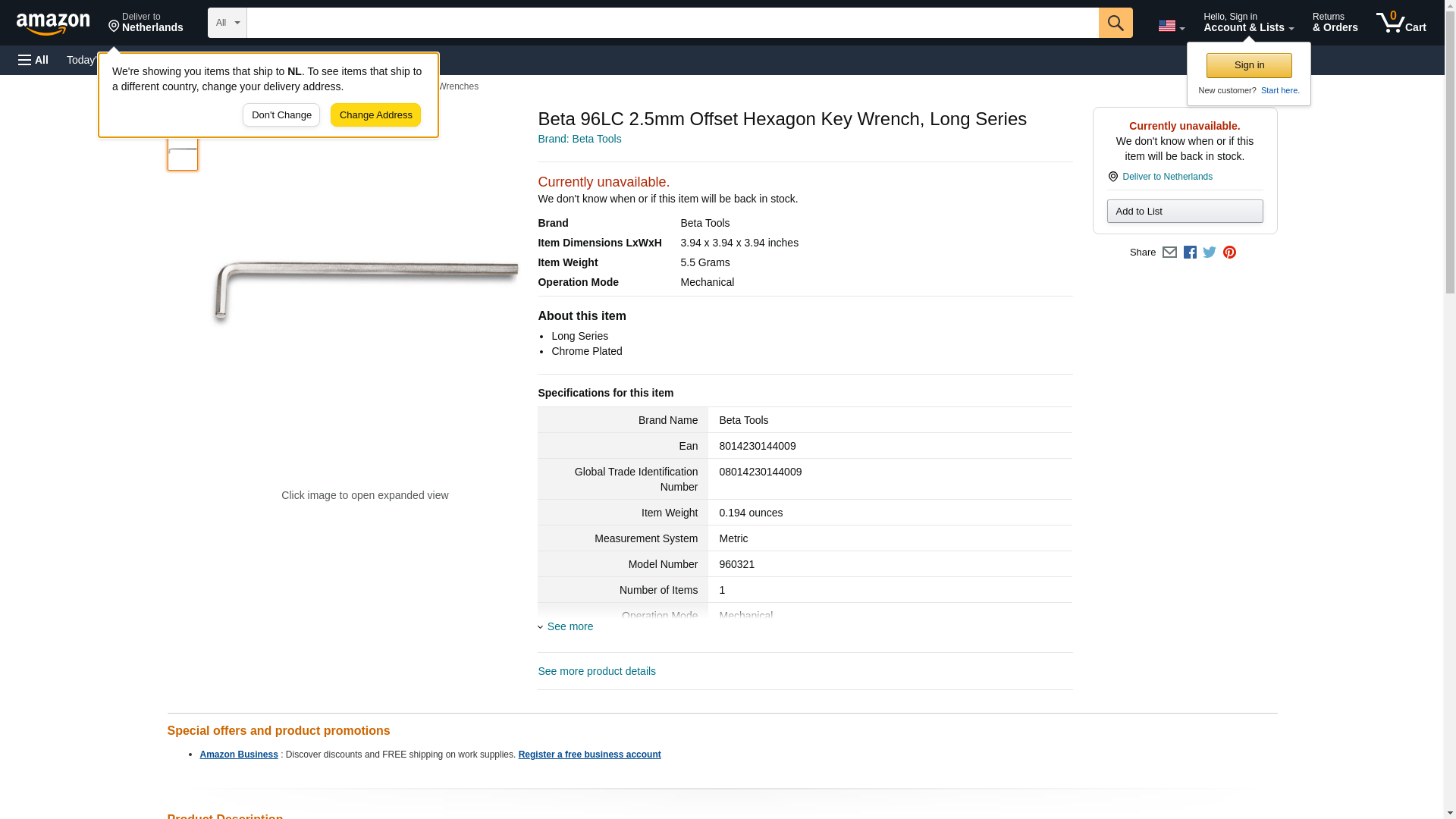Toolschest.com|Toolschest.com. Beta Tools 000960321 96LC 2-5 mm. Offset Hexagon Key Wrenches Long