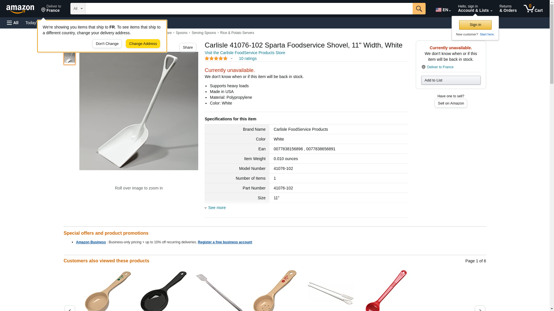 Carlisle Sparta Foodservice Shovel, White, 11" WideKeep up with your high volume of customers demands with this food service shovel that can help you prepare large amounts of food quickly.Supports heavy loads Made in USA Material: Polypropylene Color: White Width: 11" Length: 38" 670010