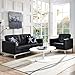 Modway Loft Upholstered Leather Mid-Century Modern Living Room Loveseat and Armchair Set in Black