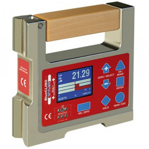 | Feature | Electronic level and inclinometer with two precision measuring bases for determining horizontal plane as well incline of + or - 60\xb0 with a resolution of 5 seconds |