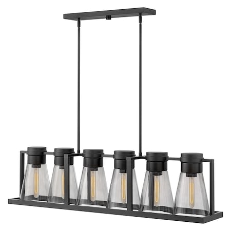 Hinkley Refinery Collection Six Light Linear Chandelier, Black w/Smoked Glass