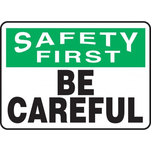 Order MGNF954XV by Accuform Adhesive Dura-Vinyl Sign "Safety First Be Careful" - US Mega Store