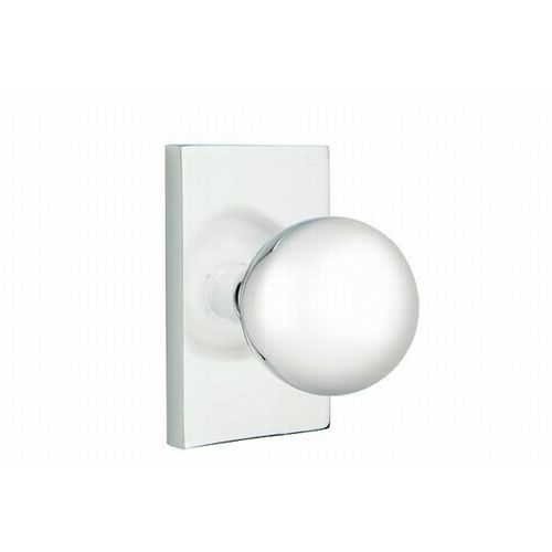 EMTEK Modern Rectangular Rosette Privacy Set with Matching Finish Orb Knob - Choice of 6 Finishes - 5212ORUS26 - Polished Chrome (US26)