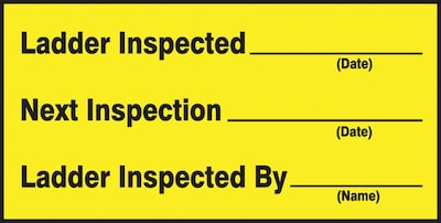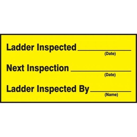 Accuform Signs LCRT507VSP Safety Label, Legend"Ladder Inspected_ Next Inspection_ Ladder Inspected by_", 1.5" Length x 3" Width x 0.004" Thickness, Adhesive Vinyl, Black on Yellow (Pack of 10)