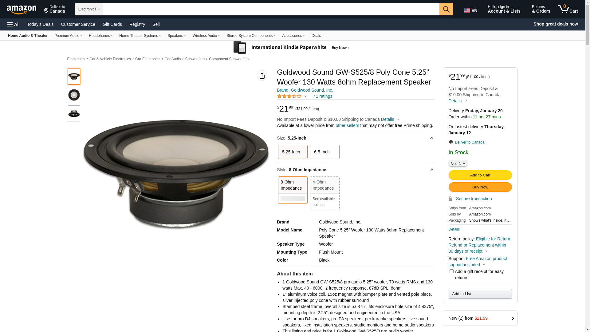 - This listing and price is for 1 Goldwood GW-S525/8 pro audio woofer