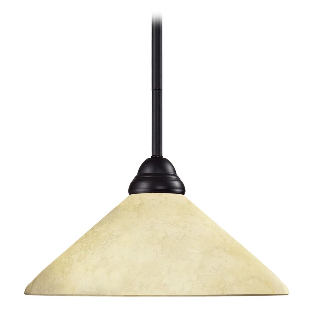Z-Lite 2114MP-BRZ-AGM14 Riviera One Light Pendant, Steel Frame, Bronze Finish and Golden Mottle Shade of Glass Material
