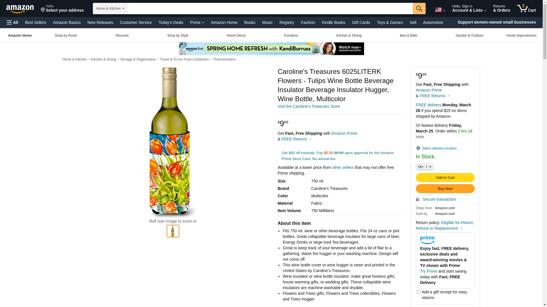 - This wine bottle cover or wine hugger is sewn and printed in the United States by Caroline's Treasures.
