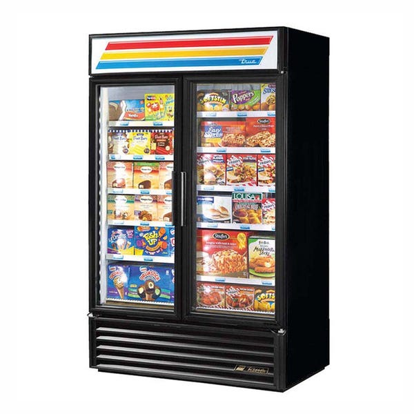 True GDM-43F-HC~TSL01 White Two Section Glass Swing Door Merchandiser Freezer 47-1/8 | TigerChef