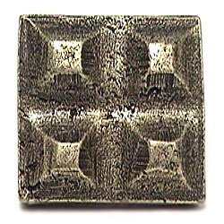 Finish:Antique Bright Silver The knobs and pulls of Emenees Hammered Metal Collection present an effortless alliance of industry and grace. Square knob with four flat-topped pyramids.
