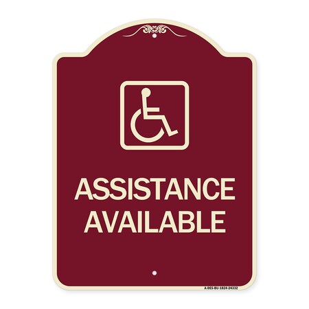 Assistance Available with Handicap Symbol Heavy-Gauge Aluminum Architectural Sign
