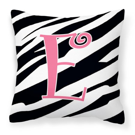 Carolines Treasures CJ1037-EPW1414 14 x 14 in. Monogram Initial E Zebra Stripe and Pink Fabric Decorative Pillow
