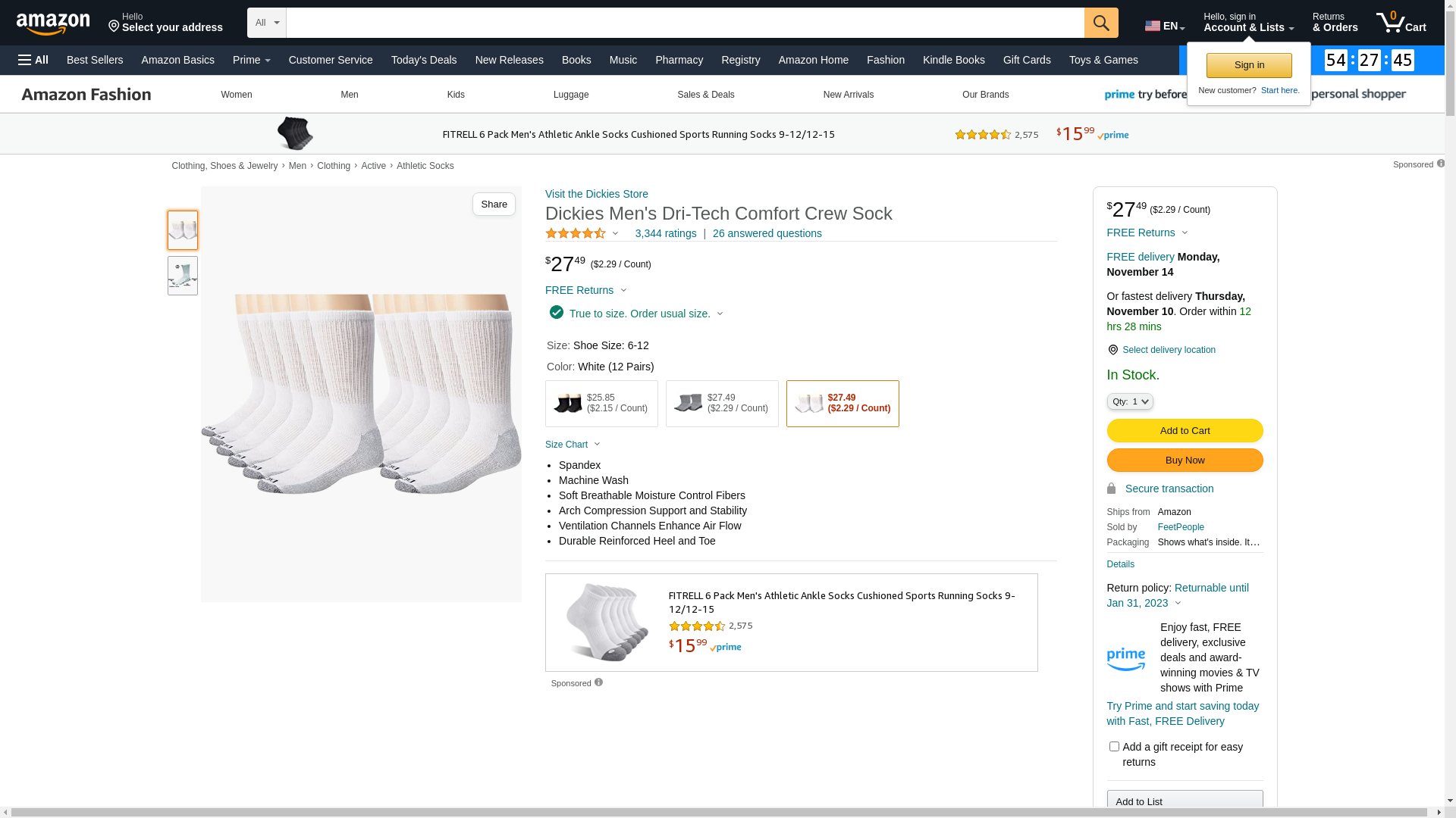 Dickies Men's Dri-Tech Comfort Crew Socks, White, 12 Pair: Maxedbuy.com