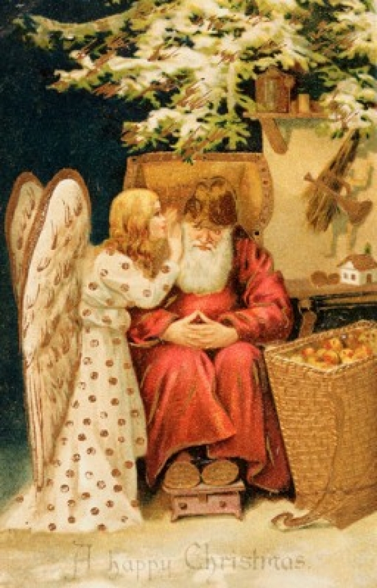 Posterazzi SAL9801224 Santa with an Angel Nostalgia Cards Poster Print - 18 x 24 in.