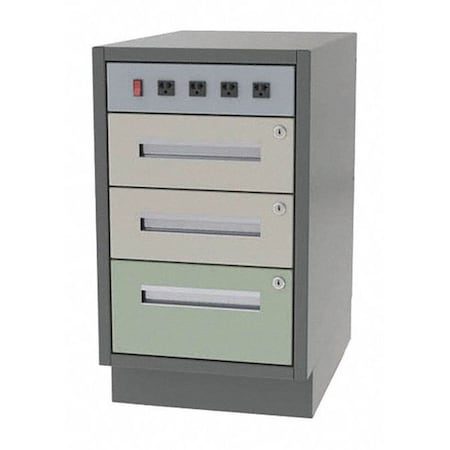 Greene Manufacturing, Inc. DTL-2424-1210-W Duratech Base Cabinet Lab Height - 24"W x 24"D x 34"H Power Panel Variable Three Drawer Base, Metal: Structural Gray