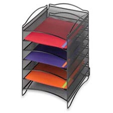 safco Onyx Steel Mesh Lliterature Sorter, Six Compartments, Black